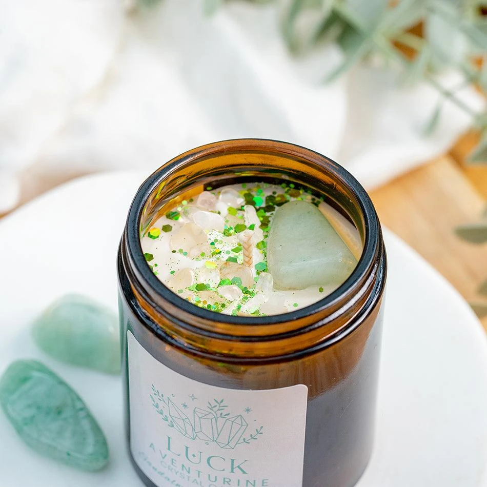 The Aventurine crystal candle is the perfect way to bring luck into your life. It’s made with a natural, raw Aventurine crystal. This stone has been used for thousands of years as a talisman of good luck and protection, and has a calming energy that helps you feel more at peace. And when you light this candle up? The flame will reflect off of its shiny surface, creating a truly unique visual experience—not to mention some serious good vibes!