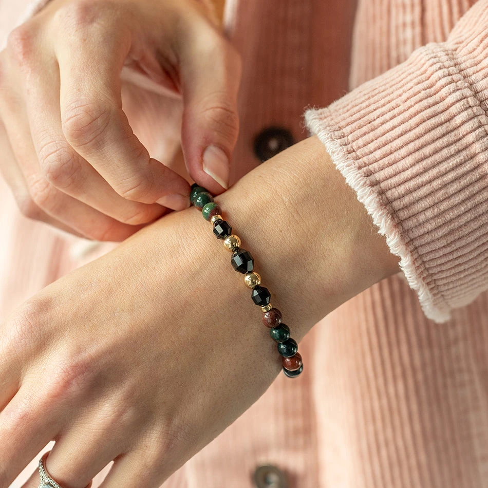 Our Purity gemstone bracelet is made with bloodstone and black tourmaline gemstones, which are known for their ability to purify the body and mind as well as protect from negative energy.