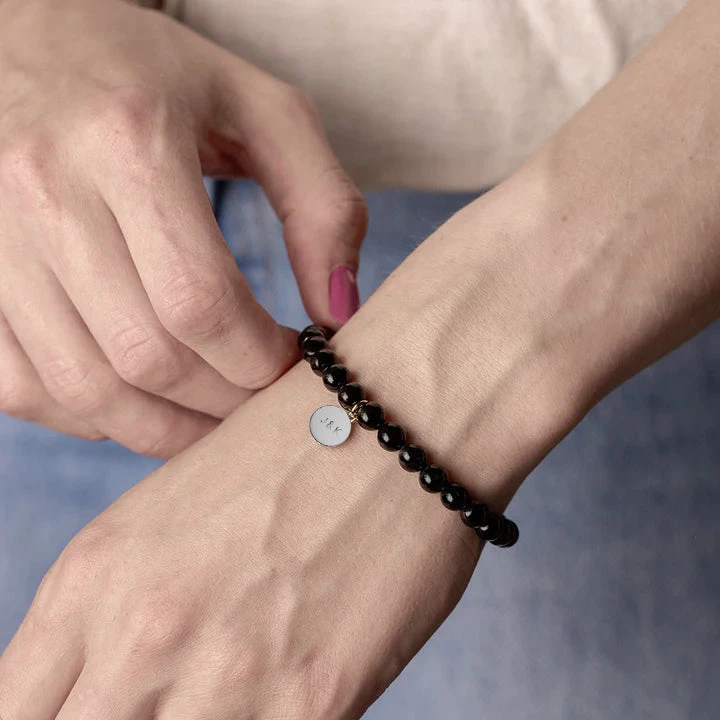This bracelet features a 10mm sterling silver charm that’s destined to be your new favorite accessory. Engrave the charm in either block capitals or casual handwritten font up to 10 characters.