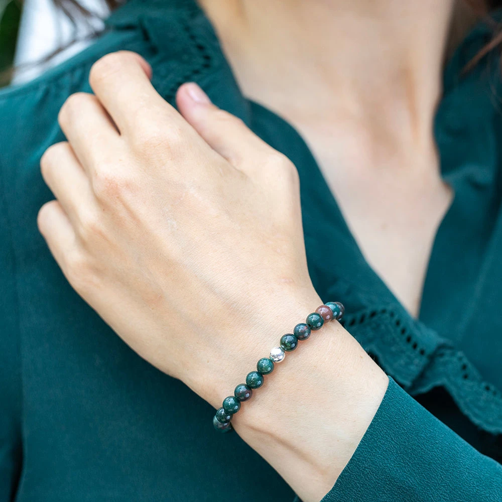 Unveil the enchanting allure of our Bloodstone Gemstone Bracelet, an essential piece for every crystal lover’s collection. Designed with 6mm beads, this bracelet radiates a classic elegance that speaks to the heart of tradition and timeless style.