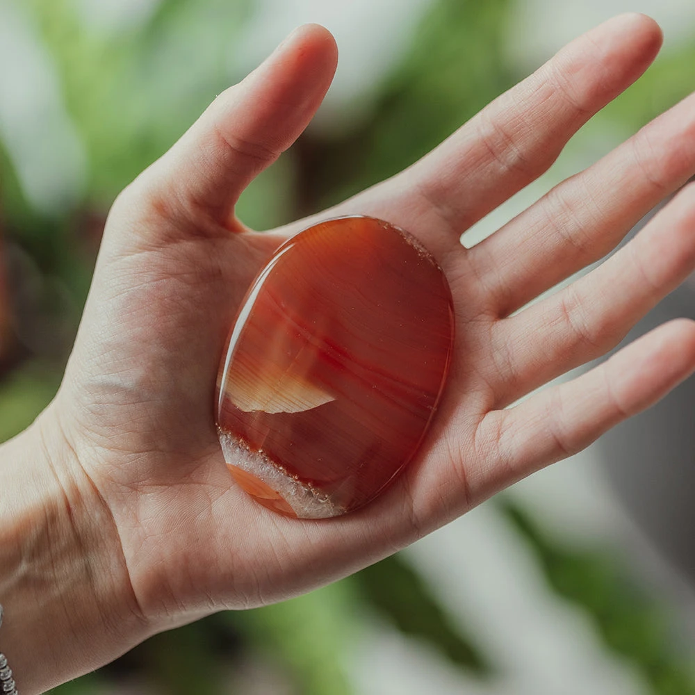 Carnelian grounds and anchors you in the present reality. It’s a stabilising stone with high energy, excellent for restoring vitality and motivation and stimulating creativity.