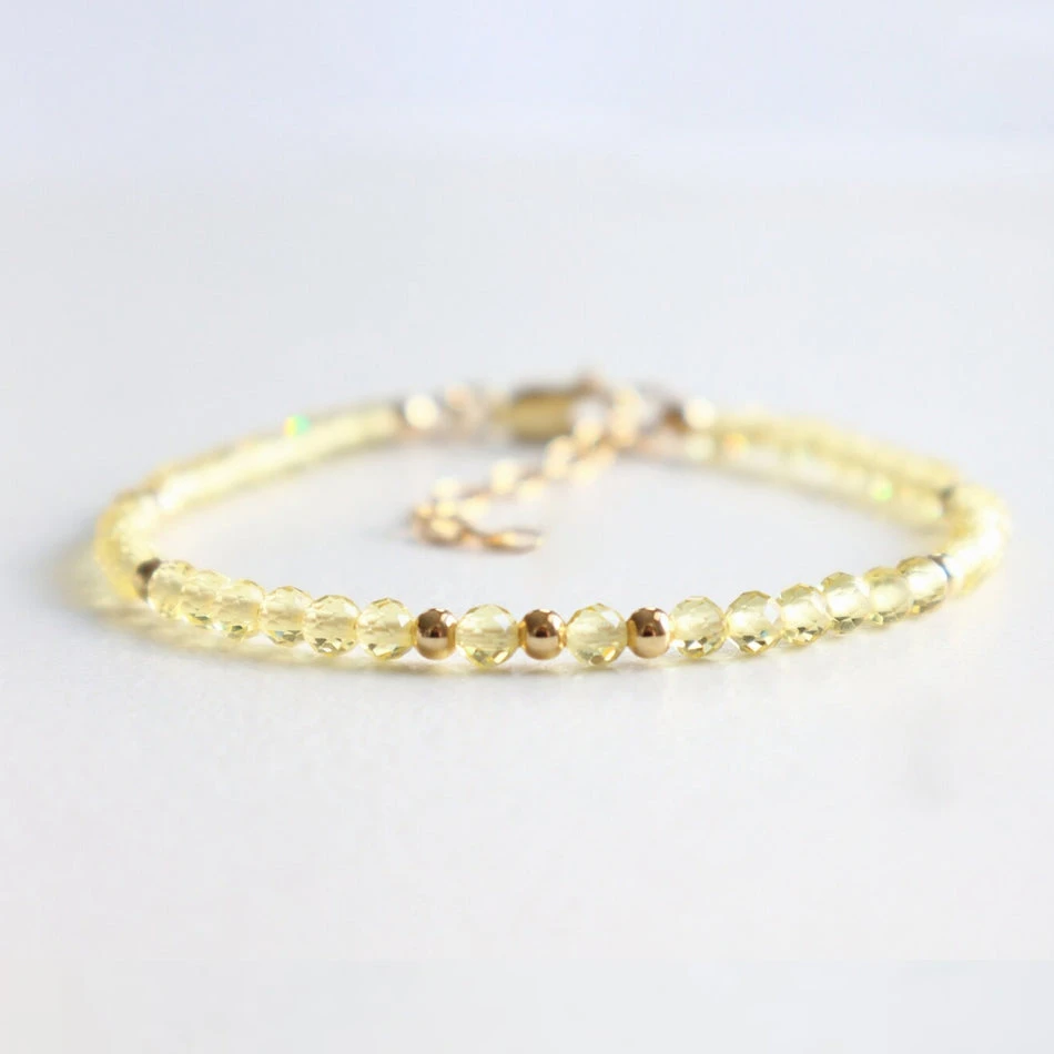 This dainty citrine crystal bracelet is perfect for stacking, and it’s also the perfect gift for those born in the month of November.
