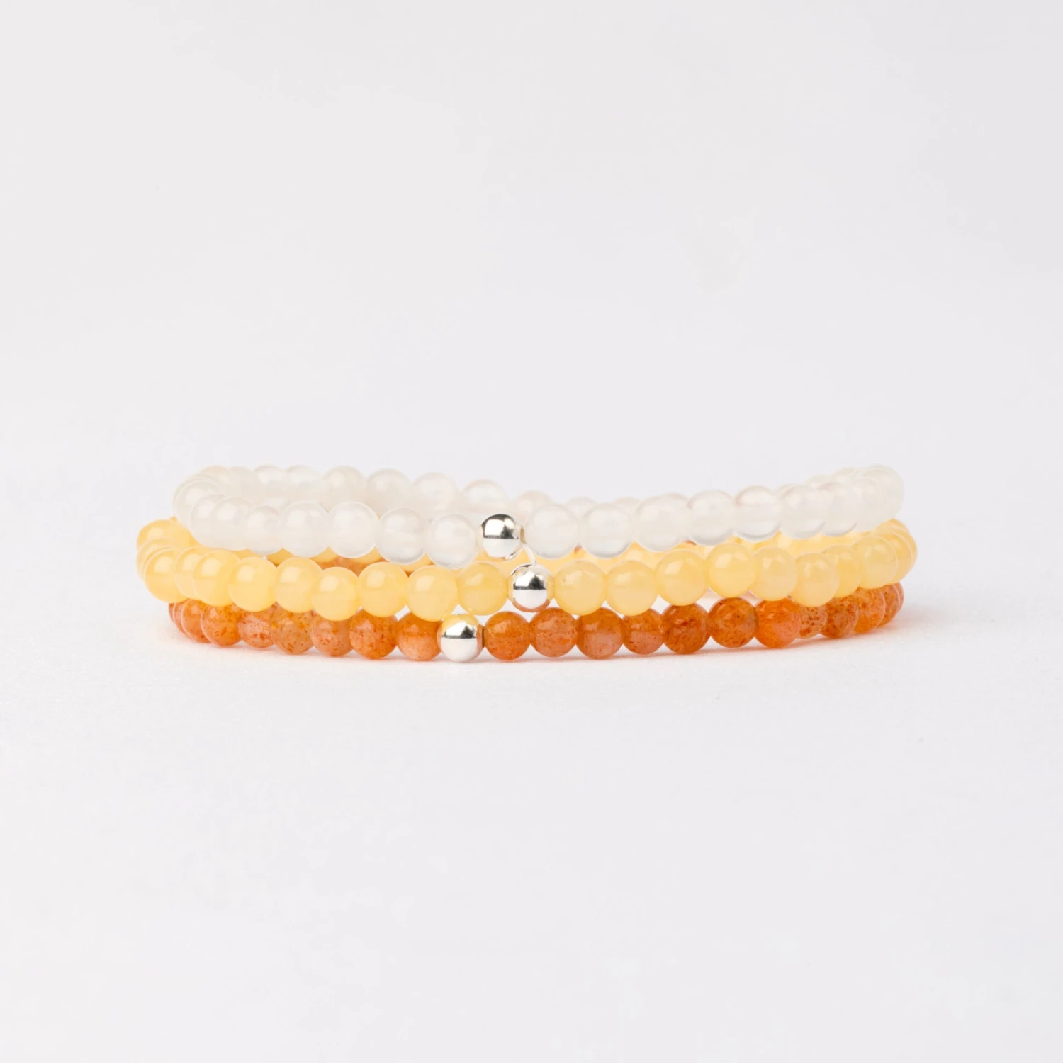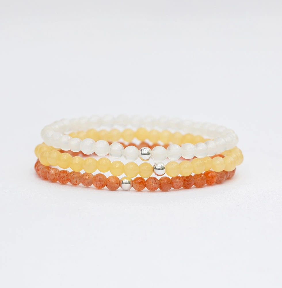 Infuse your life with uplifting energy and a radiant spirit with our Joy and Positivity Bracelet Set, a vibrant trio of gemstone bracelets designed to enhance your happiness and optimism. This set includes:
