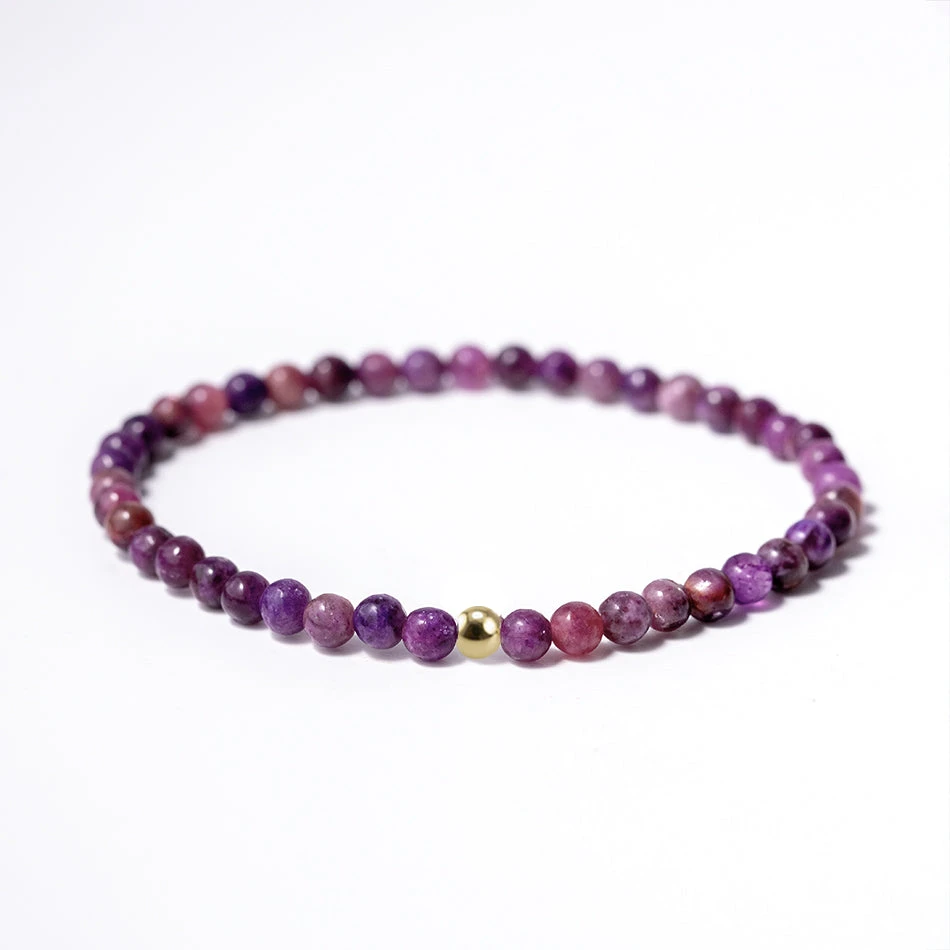 Overall, a Lepidolite gemstone 4mm bead bracelet not only adds a touch of elegance to your outfit but also carries the gentle energy and calming aura of Lepidolite, promoting a sense of tranquility and emotional well-being.