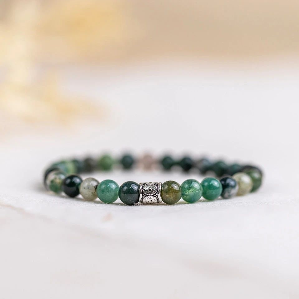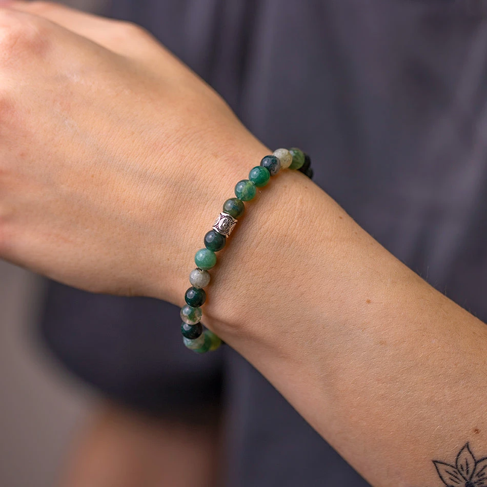 Moss Agate Gemstone Bracelet 6mm