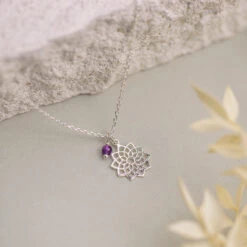 Teardrop Amethyst Gemstone Necklace – Sterling Silver(Teardrop Amethyst Necklace Sterling Silver 1)