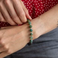 Moss Agate And Lava Stone Bracelet(Lotus Flower Moss Agate Bracelet)