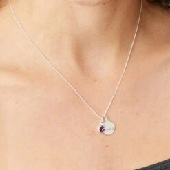Personalised February Birthstone Necklace – Amethyst(Copy Of Engraved Birthstone Necklace February)