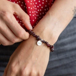 Personalised Garnet Bracelet β Crystal Chips With Engraved Name Charm(Garnet Crystal Chip Bracelet)