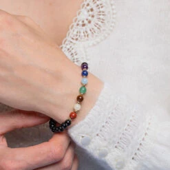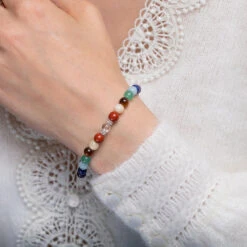 Chakra Gemstone Bracelet With Clear Quartz – 6mm Beads(Chakra Bracelet With Clear Quartz 6mm)