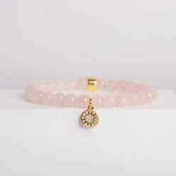 Rose Quartz Gemstone Bracelet β Celestial-Themed Charm, Handmade Jewellery(Sunstar Charm Rose Quartz Bracelet)