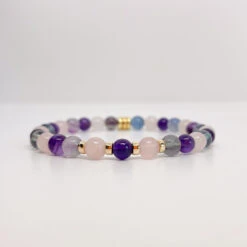 Fluorite, Amethyst & Rose Quartz Bracelet β Crystal Jewelry For Calm & Emotional Balance(The Power Of 3 For Anxiety)