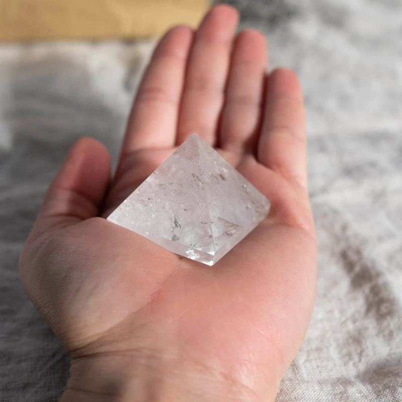 Enhance your space with the timeless beauty and powerful energy of our Quartz Pyramid. Measuring 30mm at the square base, this exquisite pyramid is expertly crafted from high-quality quartz, known for its clarity and healing properties.