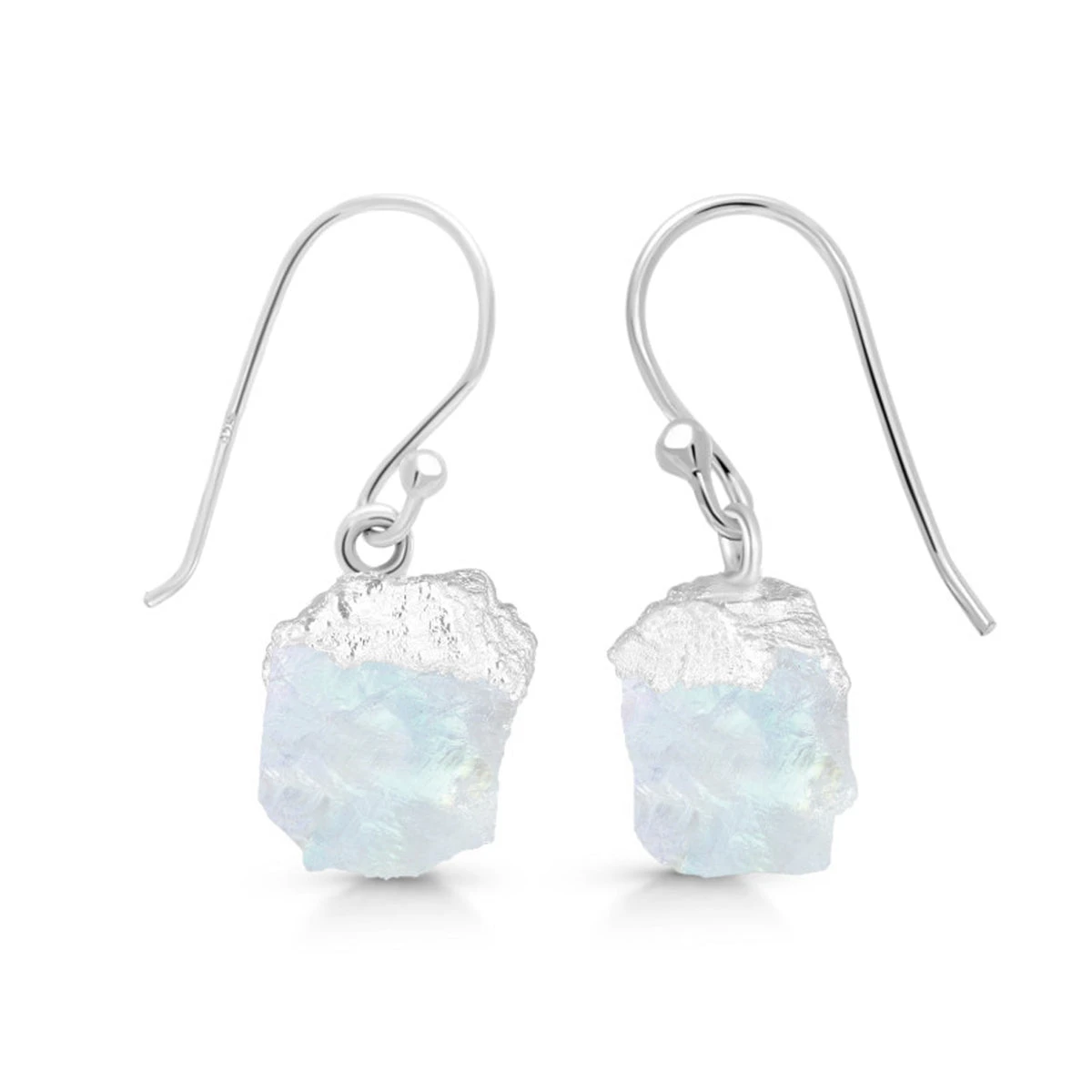 Transform your energy with the Celestial Drop Moonstone Earrings. These elegant earrings feature raw rainbow moonstones, measuring 7x10mm, each delicately dipped in sterling silver to enhance their natural allure. The unique drop wire design adds a touch of sophistication and movement, allowing the moonstones to catch the light and reveal their mesmerising play of colours.