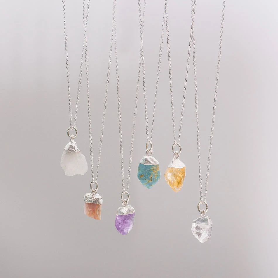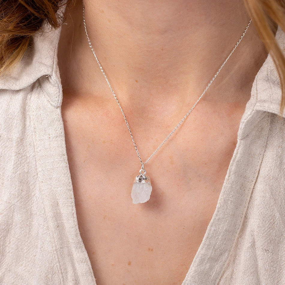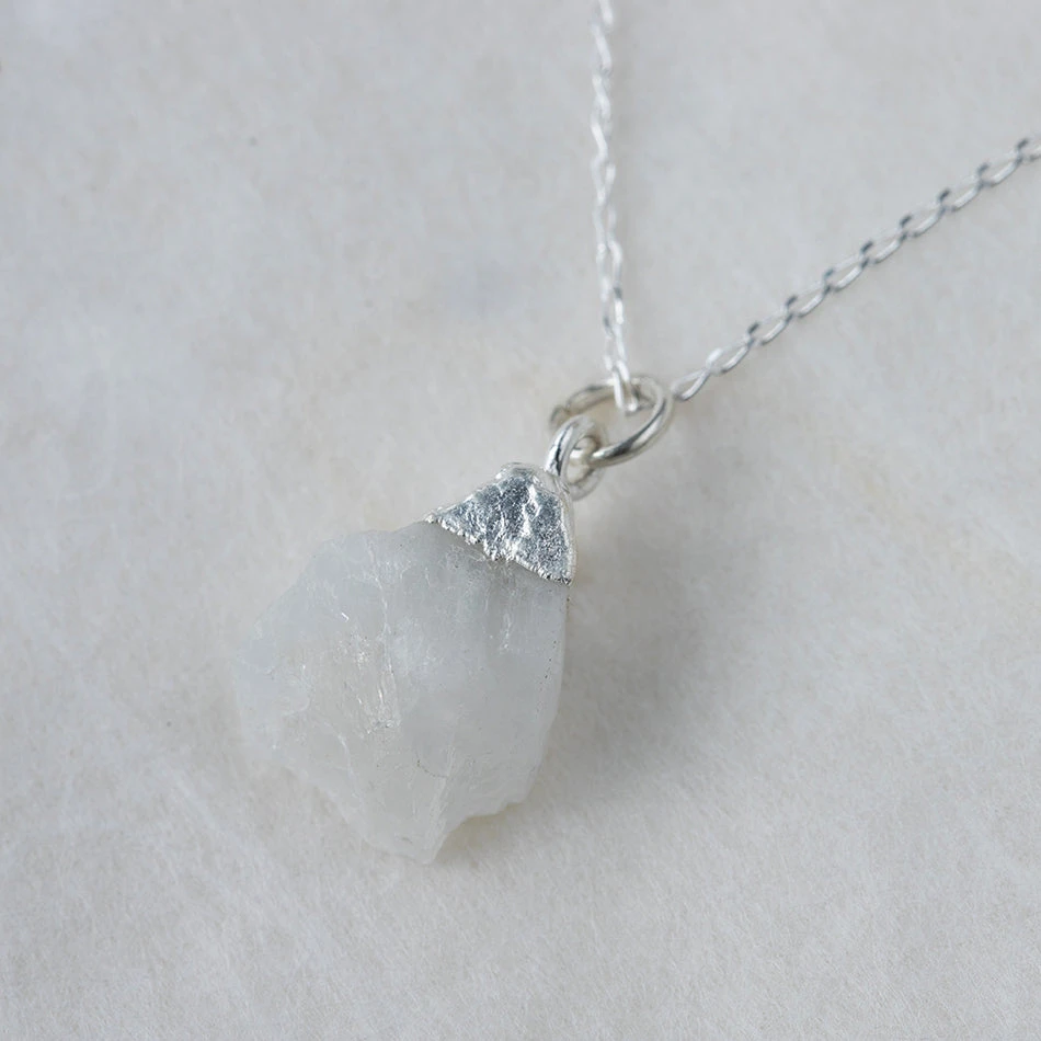 Raw Moonstone Necklace with Silver Dipped Pendant
