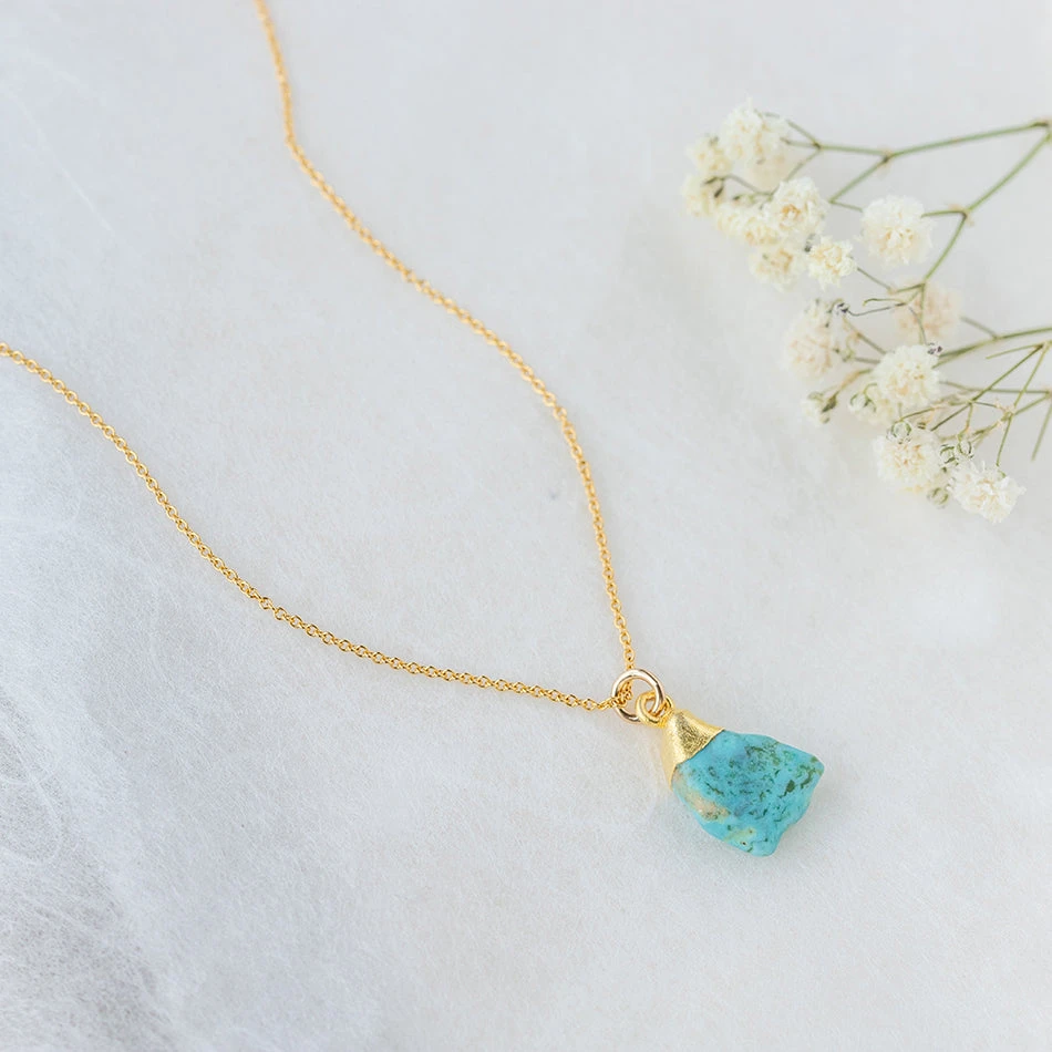 Raw Turquoise Gold Dipped Necklace