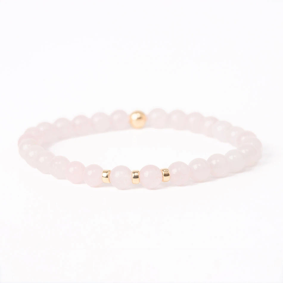 Meticulously designed, our Rose Quartz Beaded Bracelet with Gold-Filled Accents features genuine Rose Quartz beads meticulously strung alongside carefully positioned gold-filled elements. Each bead is chosen for its alluring translucence and energy, resulting in a bracelet that radiates both elegance and heart-centered energy.