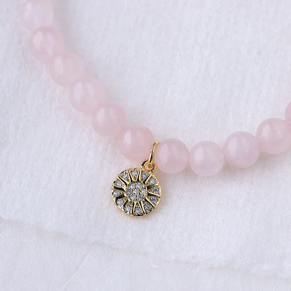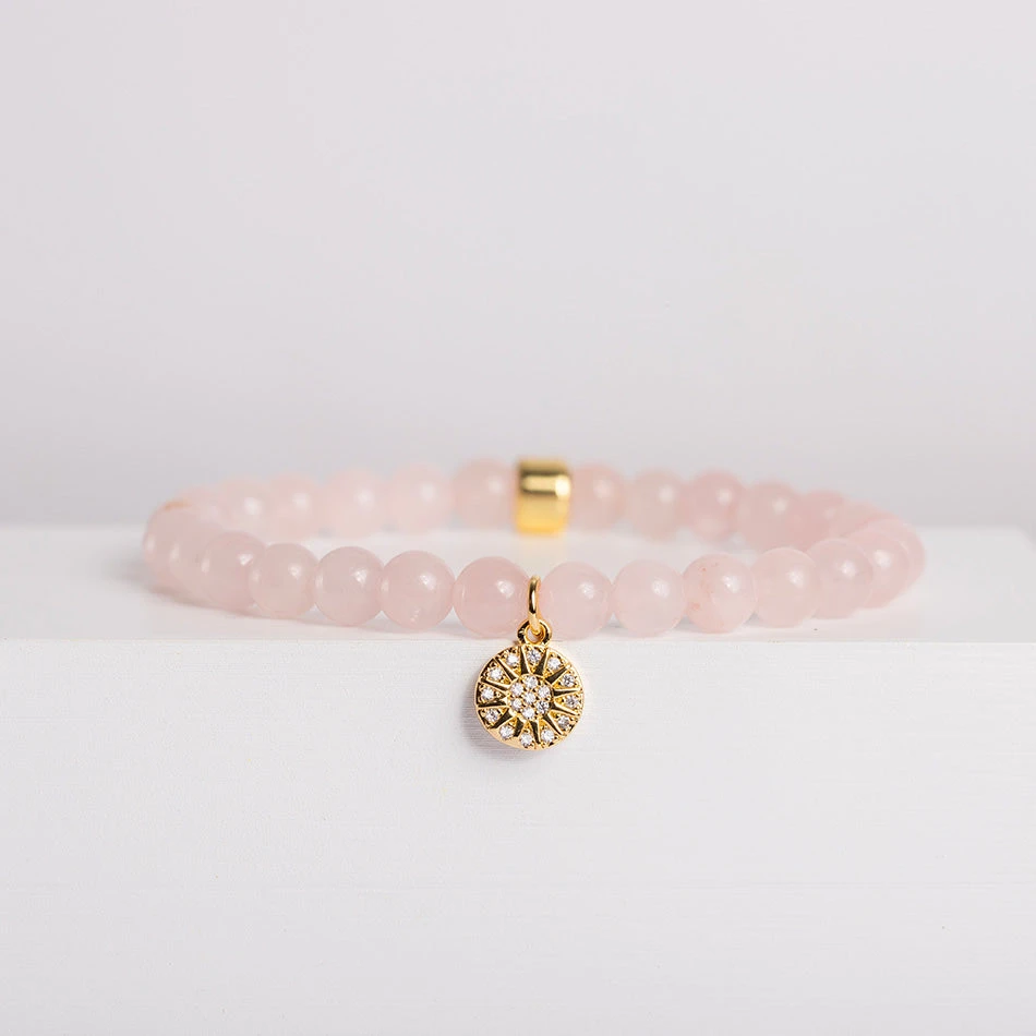Embrace the nurturing energy of rose quartz with this beautiful bracelet, a timeless accessory for love and harmony.