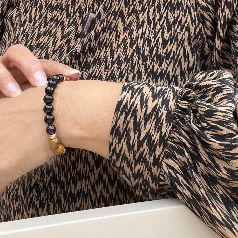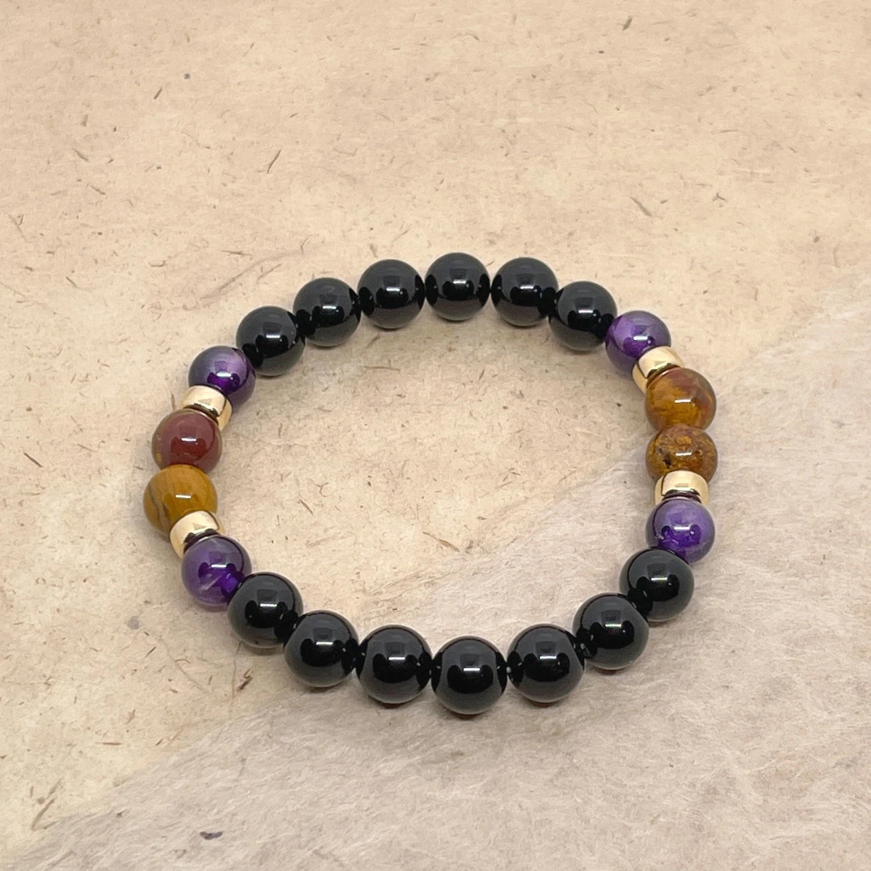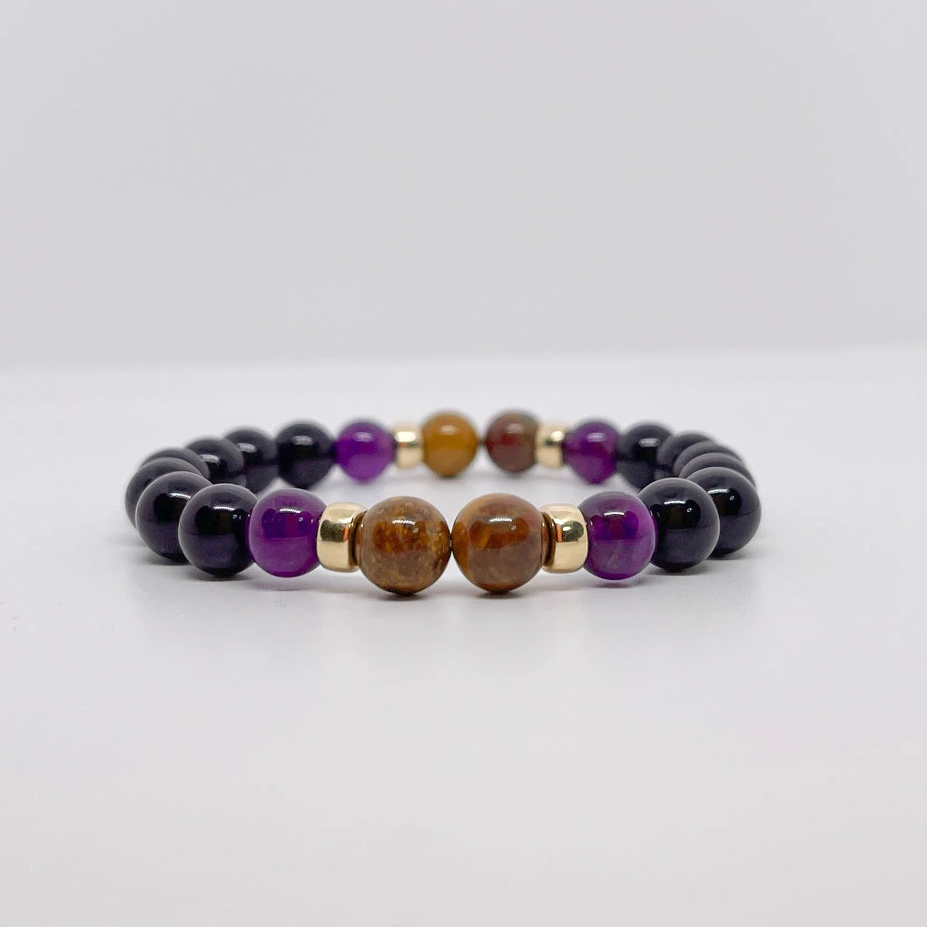 Introducing our “Stability and Serenity” Bracelet that combines the grounding properties of Black Tourmaline, the ancient wisdom of Petrified Wood, and the soothing energy of Amethyst. This bracelet is a symbol of balance, strength, and inner peace.