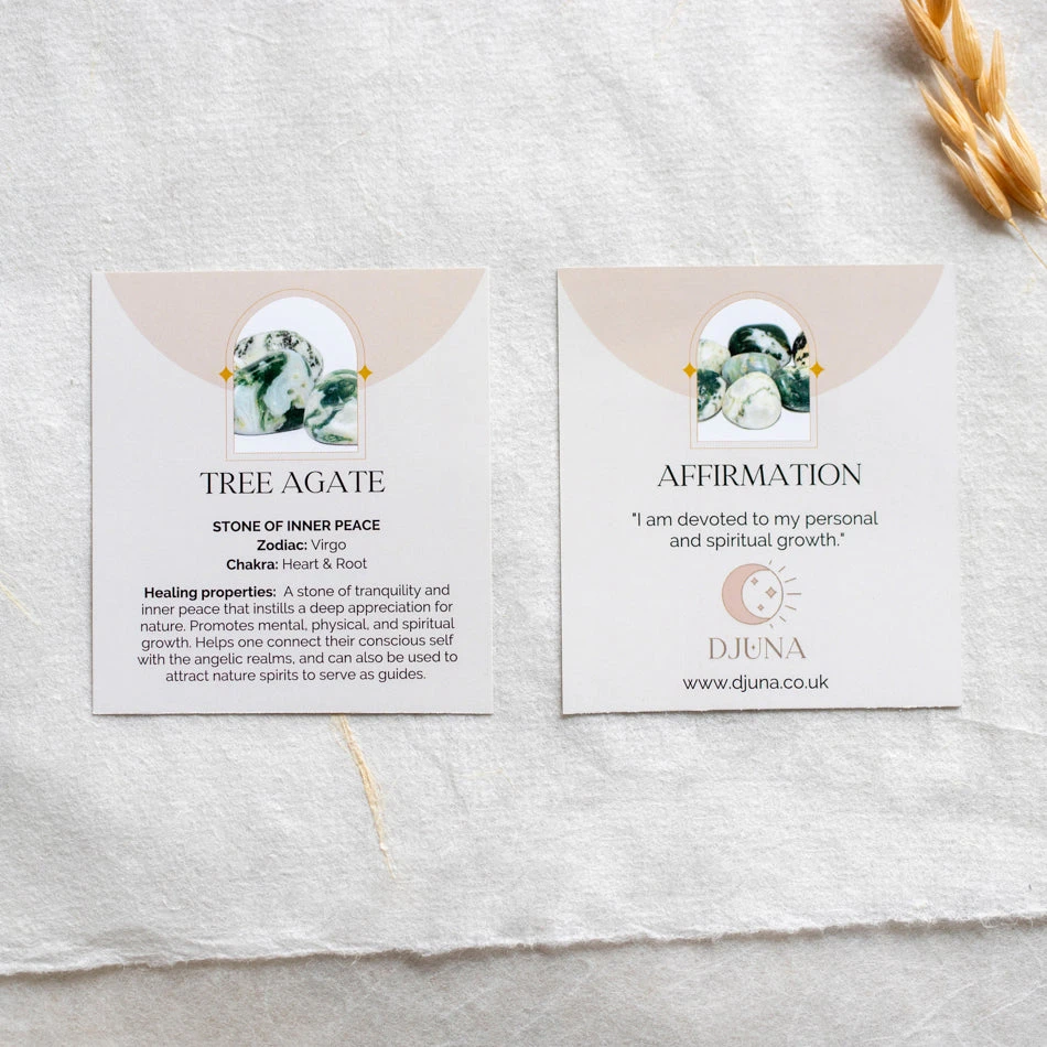 Not to be mistaken for moss agate. Tree Agate has different mineral traces creating unique green branch-like patterns. Just to look at and touch Tree Agate instils a deep appreciation for nature and all living things. It roots you into the Earth, so you feel more grounded. It calms you both physically and emotionally and helps to store your equilibrium.