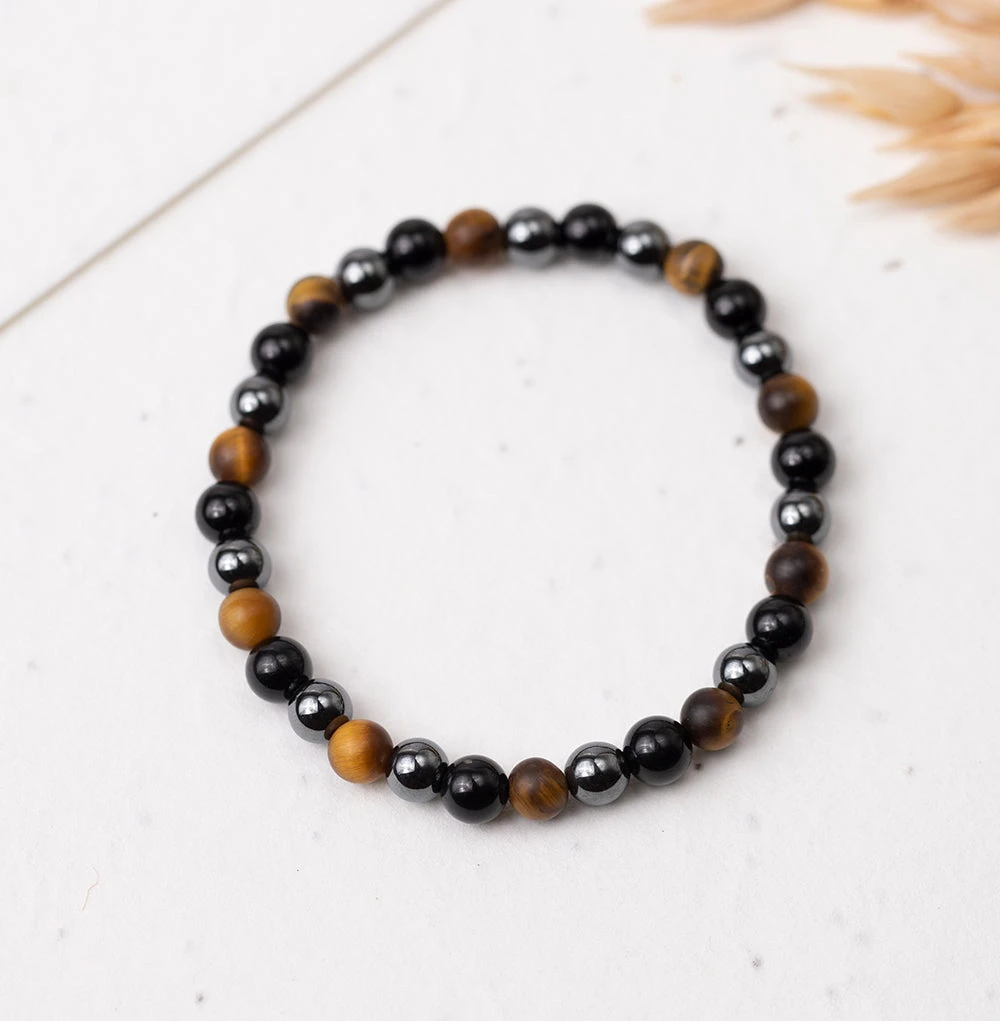 This bracelet’s combination of black tourmaline, hematite and tiger eye is said to be a powerful one to help you face whatever life throws at you while also helping you get in touch with your emotions and feelings. This piece is best worn to protect you from negativity and bad vibrations. It is also said to help in the resolution of conflicts and disputes.