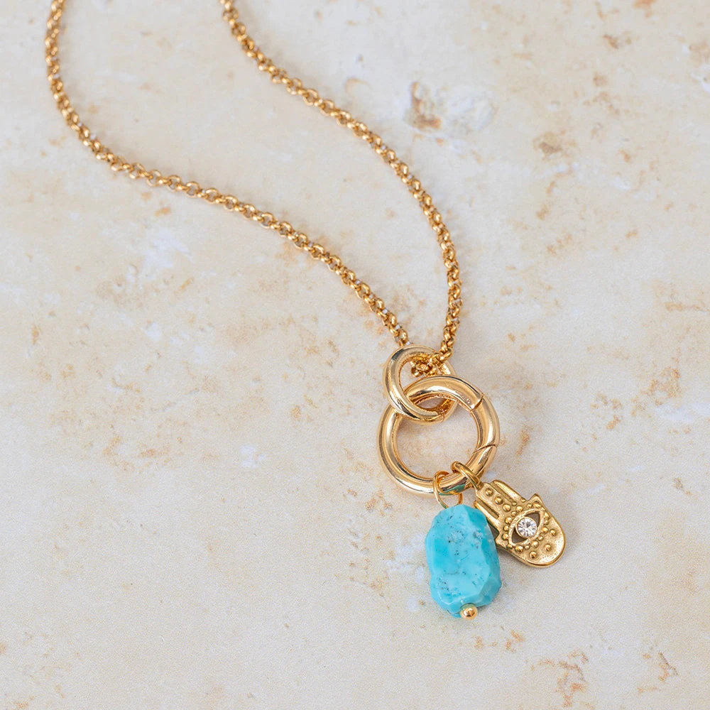A charm necklace rooted in protection, healing, and intention, this design features two powerful symbols suspended from a 22K gold plated on stainless steel belcher chain (45cm with a 5cm extender), offering both beauty and meaning in one effortless piece.